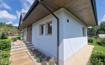 Powierzchnia całkowita domu 140 m2 a użytkowa to 110 m2. Działka posiada metraż 700 m2.