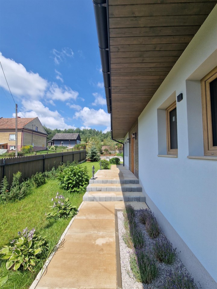 Dom trafi w gust każdego, dla kogo cisza, jakość wykonania, wygoda i niezależność jest priorytetem poszukiwanej nieruchomości. Dojazd do domu prowadzi zjazd z drogi powiatowej. Droga utwardzona. Na działce wygodny podjazd na którym możemy łatwo i sprawnie zaparkować do czterech aut.
