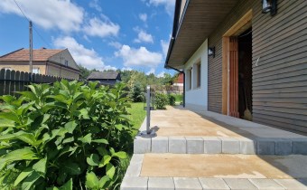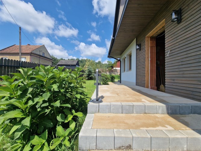 Dodatkową powierzchnią, która przynależy do domu jest taras od strony północnej o metrażu - 20 m2 oraz balkon na piętrze pierwszym z wyjściem od strony sypialni właścicieli o metrażu - 6 m2.