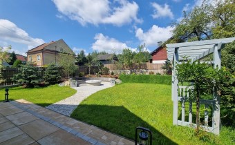 Ogród w pełni zagospodarowany z licznymi wyjątkowymi nasadzeniami, kwiatami i starodrzewem. Ekspozycja części ogrodu od strony tarasu jest na północ. Taras powstał w konstrukcji betonowo - murowanej a wykończony został w tynku szlachetnym z kolorowymi elementami zdobnymi.