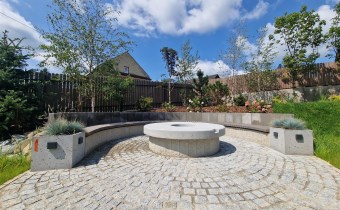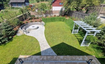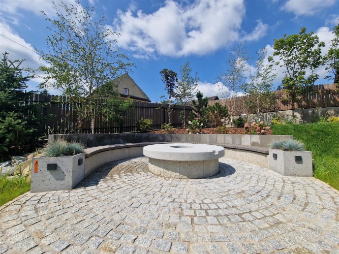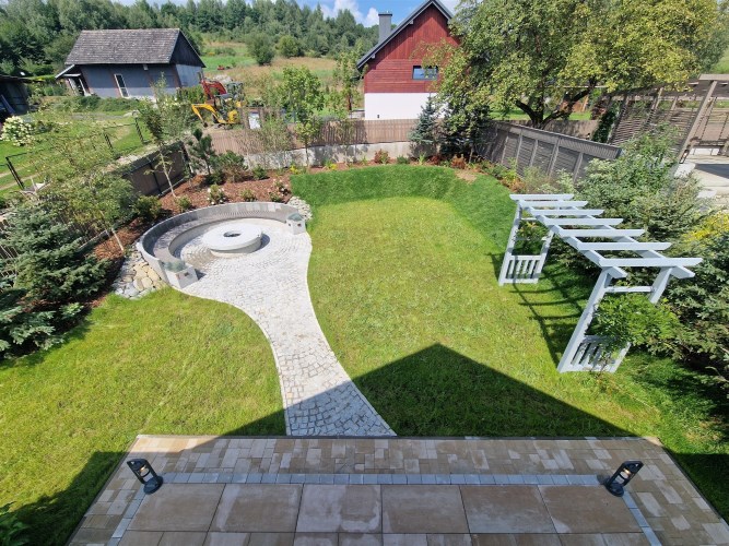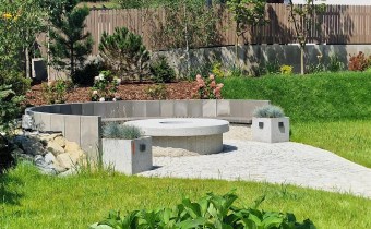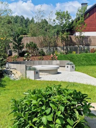 Tuż obok tarasu powstało klimatycznie zaaranżowane palenisko, oaza relaksu która ma służyć za miejsce odpoczynku ale też eventom rodzinnym lub spotkań ze znajomymi.