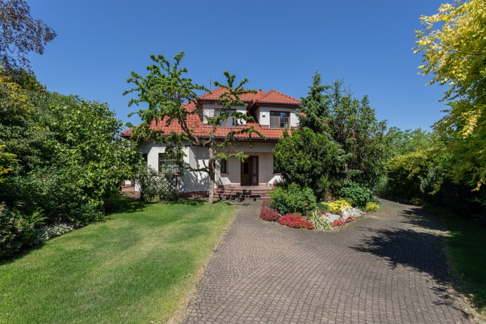 Oferujemy Państwu dom wolnostojący, ośmiopokojowy o powierzchni całkowitej 450 m2 a użytkowej 400 m2 mieszczący się w okolicy ulicy Wichrowa. Budynek stanowi klasyczny projekt architektury z lat 90 tych XX wieku. Części zewnętrzne budynku stanowi: elewacja w tynku w jasnym kolorze, taras z gresem małoformatowym i podestem wejściowym otaczającym 1/4 domu, oknami drewnianymi, kratami w oknach na kondygnacji wjazdu do garażu, drzwi wejściowe solidne - drewniane, kamienne parapety, oświetlenie nocne, dach kryty dachówką ceramiczną. Bramy garażowe blaszane z opcja otwierania na pilota.