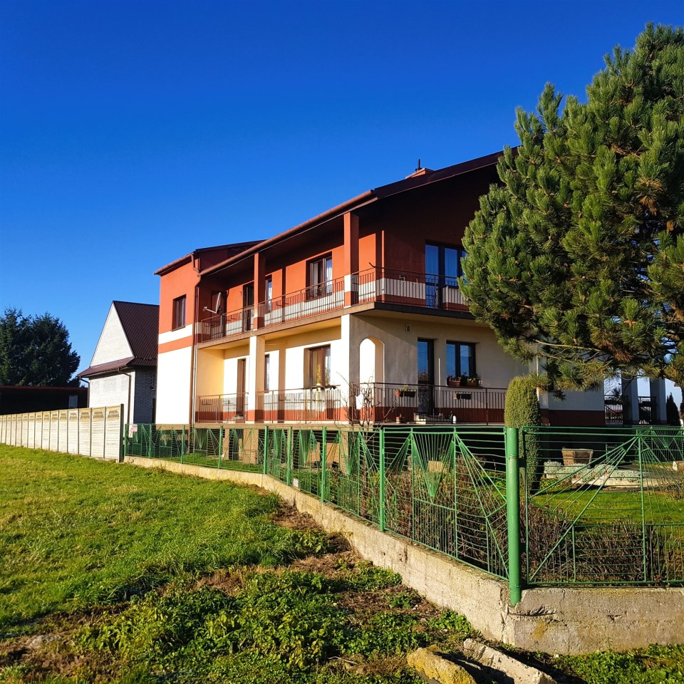 Rozkład: 6 pokoi, 2 kuchnie, 2 łazienki, duże balkony. Układ idealny dla dużej rodziny lub do zamieszkania przez dwa niezależne gospodarstwa domowe.