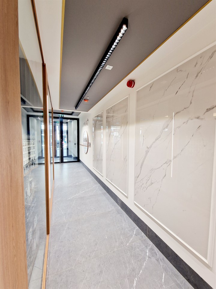 Lokal posiada podejścia pod wodę i kanalizację, centralę wentylacyjną wyciągowo-nawiewną z rekuperacją bez rozprowadzenia wewnątrz lokalu oraz klimatyzację. Instalacja elektryczna jest w formie zasilania do tablicy (bez rozprowadzenia wewnątrz lokalu).