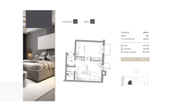 Dodatkową przestrzenią która przynależy wyłącznie do tego apartamentu są dwa balkony z widokiem na panoramę miasta. Balkony wspólnie posiadają metraż 5 m2.