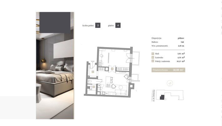 APARTAMENT 2 POKOJOWY W DZIELNICY KAZIMIERZ - UL. ŚW. SEBASTIANA - METRAŻ CAŁKOWITY 58,88 M2