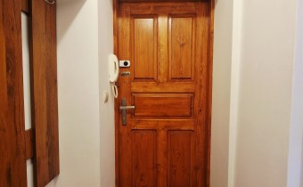 Pomieszczenia są umeblowane a kuchnia z jadalnią jest wyposażona w dobrej jakości meble kuchenne. Ogrzewanie z kaloryferów elektrycznych. Na podłodze w pomieszczeniach nieruchomości znajdują się panele imitujące drewno w kolorze ciemnego dębu. Podłoga łazienki razem z WC to terakota wielkoformatowa w jasnej tonacji kolorystycznej z WC, umywalką i bojlerem elektrycznym na wyposażaniu. Podłoga przedpokoju w gresie w kolorze jasnobrązowym z naściennym wieszakiem i szafką na buty na wyposażeniu.
