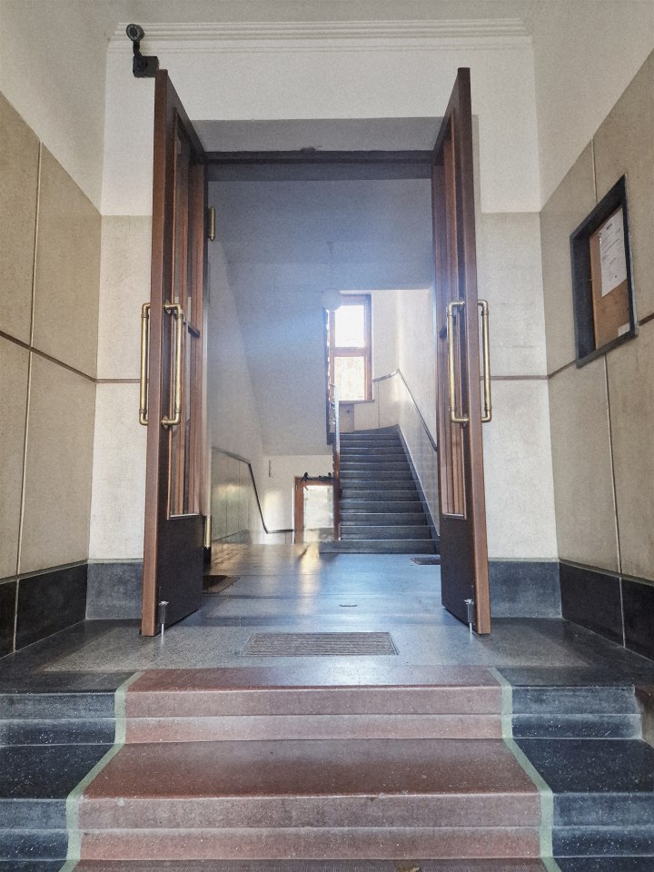 Części wspólne kamienicy stanowi: klatka ze ścianami w wykończeniu z naturalnego kamienia jakim jest marmur, drzwi wahadłowe z szybami kryształowymi i mosiężnymi okuciami i szkłem, lastrikowe mozaiki podłogowe (terrazzo), stal proszkowa przy balustradach oraz pochwyty drewniane. Nieruchomość w idealnie cichej części budynku z widokiem na plac za kamienicą.