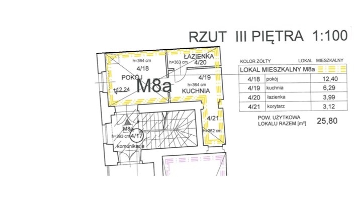Wysokość pomieszczeń w lokalu wynosi 364 cm co pozwala na wykonanie małej antresoli w mieszkaniu. Do mieszkania przynależy stryszek bezpośrednio nad mieszkaniem o metrażu - (15 m2). Możliwość zaaranżowania mieszkania dwupoziomowego po połączeniu ze sobą dwóch poziomów.