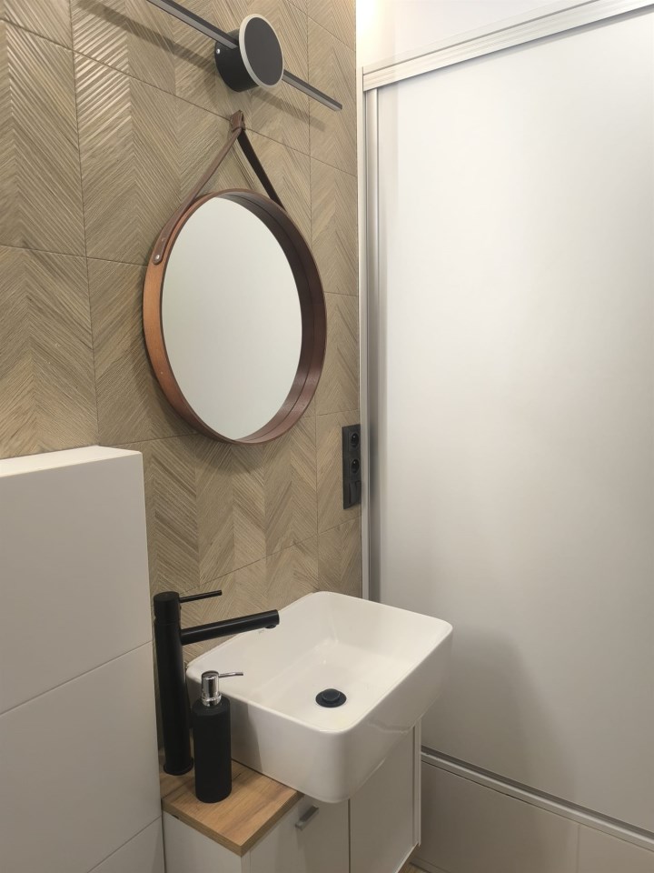 Wyposażenie łazienki lustro, prysznic, umywalka, WC