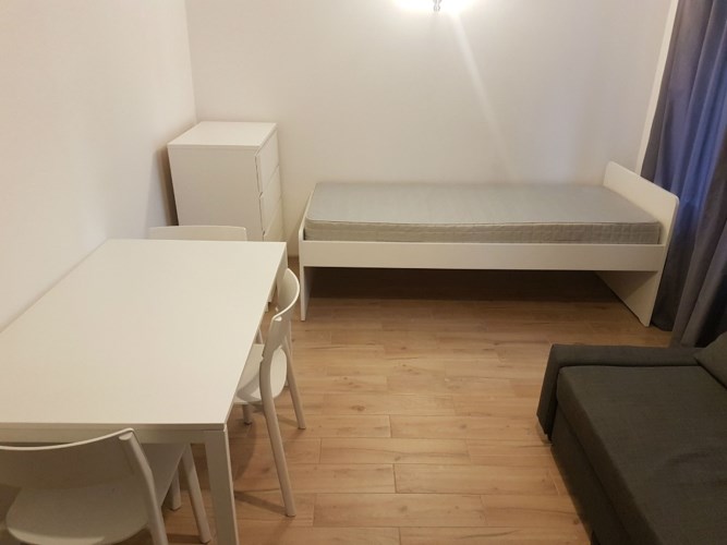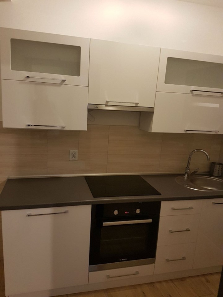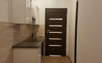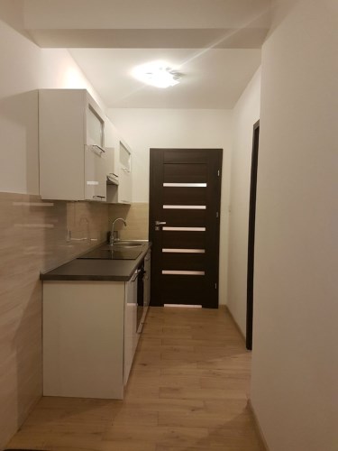 Powierzchnia całkowita i powierzchnia użytkowa wynosi 34,10 m2. Mieszkanie w stanie do wprowadzenia. Wykończenie mieszkania wskazuje na zamiłowanie właścicieli do nowoczesnego i minimalistycznego podejścia do aranżacji wnętrz. Mieszkanie wyposażone w meble nabywane na potrzeby pasującego do całości stylu. Ściany łazienki w beżowej kolorystycznie glazurze. Podłogi pokoi, przedpokoju i aneksu kuchennego z gresu stylizowanego na drewnianą dębową stylistykę w bardzo dobrym stanie a podłoga łazienki w nowoczesnej beżowej terakocie.