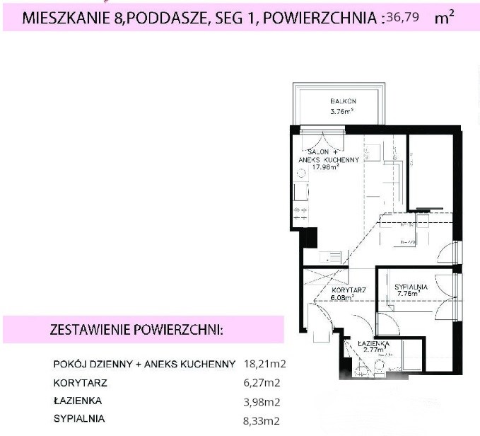 Zgodnie z załączonym rzutem mieszkanie składa się z:
