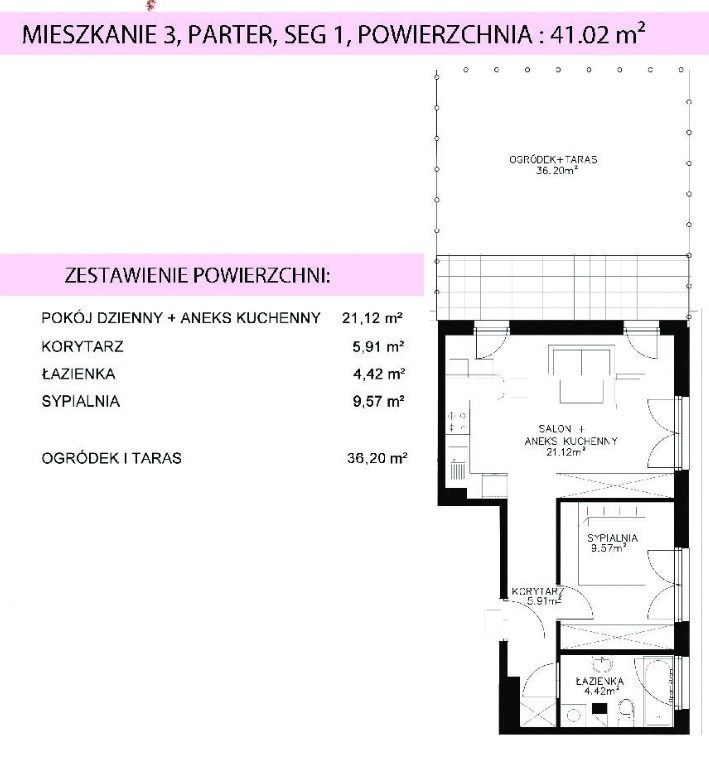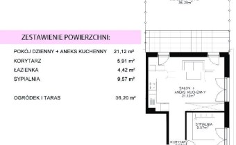 Z salonu wychodzimy na prywatny ogródek z tarasem o powierzchni ok. 34,8 m².