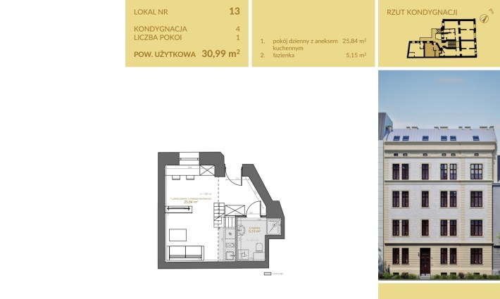Oferujemy na sprzedaż kompaktowe, jednopokojowe mieszkanie o powierzchni 30,99 m2, położone na 3 piętrze odnowionej kamienicy przy ul. Krowoderskiej, w samym sercu Krakowa, w prestiżowej dzielnicy Kleparz, tuż przy Starym Mieście. Lokal składa się z pokoju z aneksem kuchennym, łazienki oraz wiatrołapu i jest oddawany w stanie deweloperskim, co pozwala na pełną, indywidualną aranżację wnętrza zgodnie z własnym stylem i potrzebami. To doskonała przestrzeń zarówno dla osób szukających praktycznego mieszkania blisko centrum, jak i inwestorów planujących wynajem.
