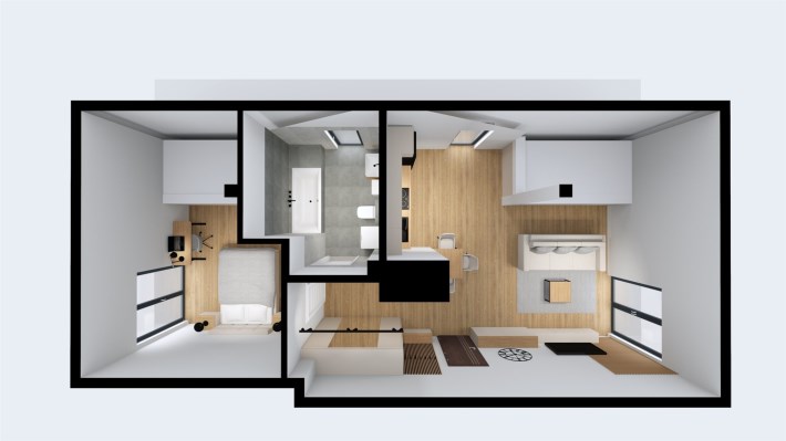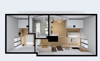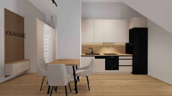 Funkcjonalna komunikacja między pomieszczeniami z możliwością zabudowy szafy wnękowej.