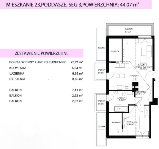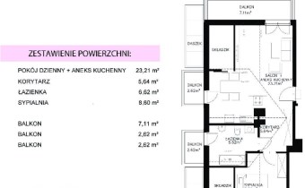 Zgodnie z załączonym rzutem mieszkanie składa się z: