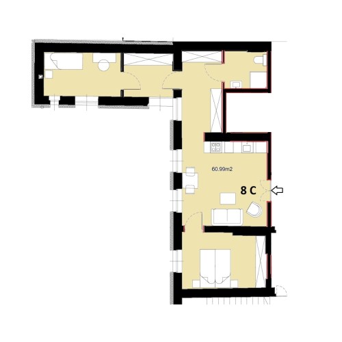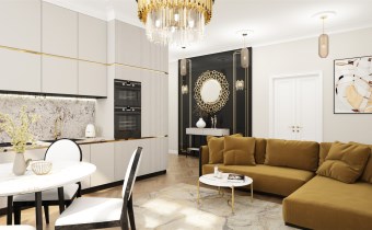 Przemyślany rozkład sprawia, że apartament jest przestronny i doskonale doświetlony, co zwiększa komfort codziennego użytkowania.