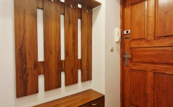 Pomieszczenia są umeblowane a kuchnia z jadalnią jest wyposażona w dobrej jakości meble kuchenne. Ogrzewanie z kaloryferów elektrycznych. Na podłodze w pomieszczeniach nieruchomości znajdują się panele imitujące drewno w kolorze ciemnego dębu. Podłoga łazienki razem z WC to terakota wielkoformatowa w jasnej tonacji kolorystycznej z WC, umywalką i bojlerem elektrycznym na wyposażaniu. Podłoga przedpokoju w gresie w kolorze jasnobrązowym z naściennym wieszakiem i szafką na buty na wyposażeniu.