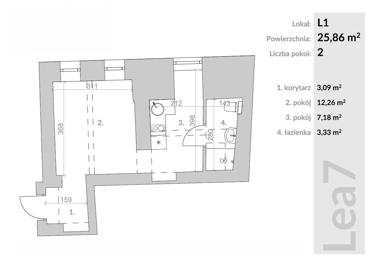 UL. JULIUSZA LEA - METRAŻ WYNOSI 25,86 M2
