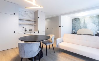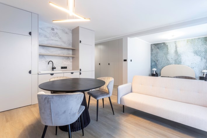 Zaprojektowane przez jedna z Krakowskich pracowni mieszkanie, wyposażone jest w nieprzeciętną ilość udogodnień a wszystko to w najmodniejszych kolorach 2024 r.