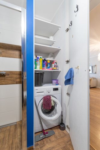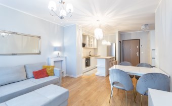 Mieszkanie posiada udogodnienia w postaci balkonu z wejściem tak od pokoju dziennego jak i od sypialni (mieszkanie można dzięki temu łatwo przewietrzyć) oraz duże przestronne okna w części pokoju dziennego co sprawia że salon zawsze pozostanie dobrze doświetlonym pomieszczeniem. W kuchni oprócz standardowych urządzeń AGD ułatwienia znajdziemy w postaci zmywarki do naczyń i pojemnej lodówko-zamrażarki.