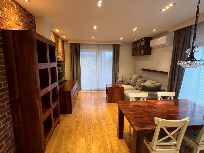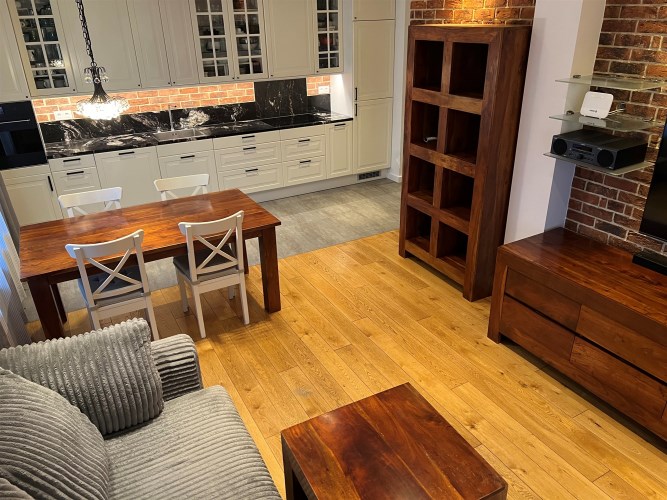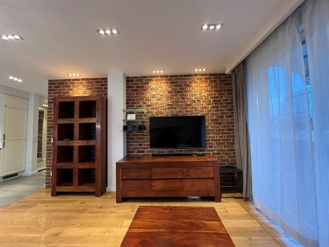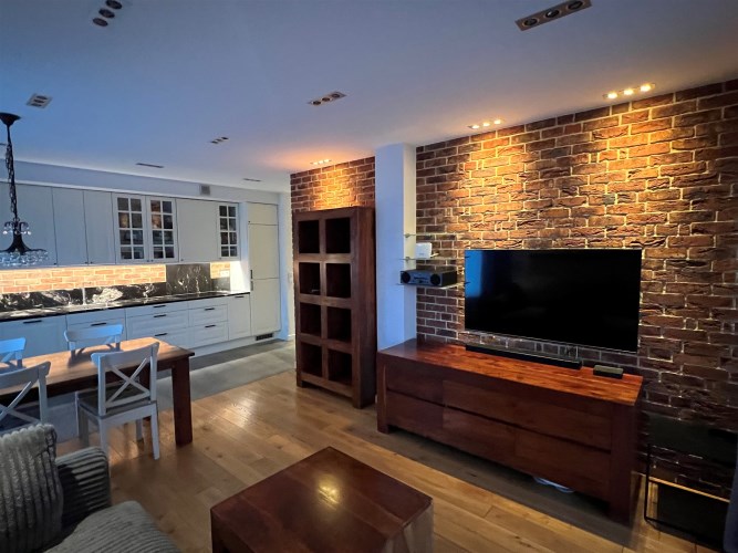 Mieszkanie jest w stanie idealnym. Wnętrza zostały zaprojektowane przez architekta z dbałością o detal oraz funkcjonalność, przy użyciu naturalnych materiałów wysokiej jakości (drewno, kamień, cegła).
