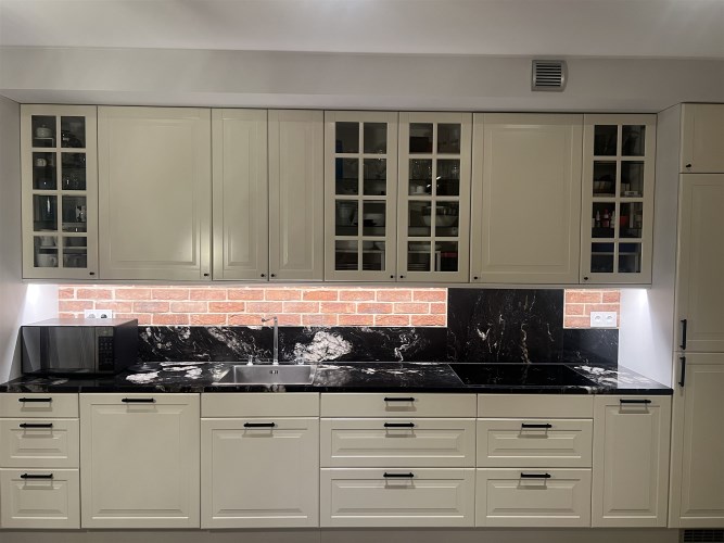 - na ścianie naturalne płytki klinkierowe, które tworzą wyjątkowy klimat.