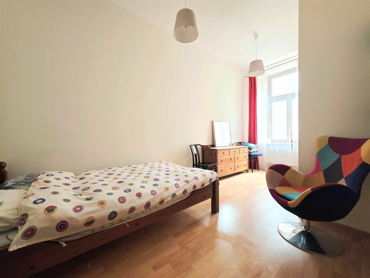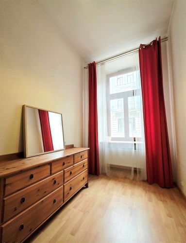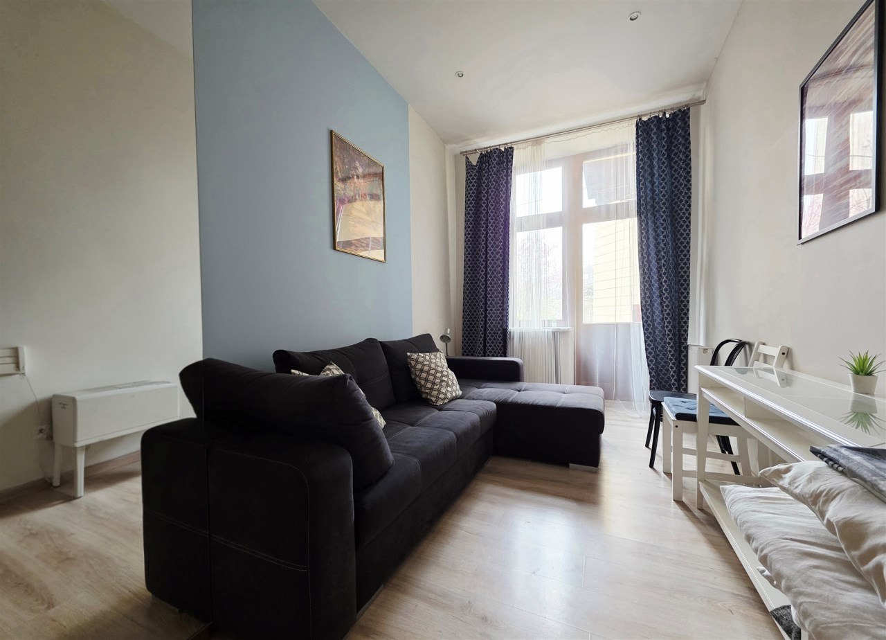 Nieruchomość z widokiem na panoramę okolicy oraz zielony plac który znajduje się za kamienicą. Komfortowy apartament położony w lewym skrzydle budynku. Na pierwszym planie znajduje się duży salon o wysokości ponad 3,30 metrów doświetlony w dużej części oknem od strony południowej z widokiem na ulicę Wrzesińską. W salonie znajdziemy również zabudowany praktycznie aneks kuchenny wyposażony we wszystkie niezbędne sprzęty AGD. Za ścianą salonu znajdują się dwie sypialnie których widok również skierowany jest na ulicę Wrzesińską. Przechodząc z salonu korytarzem mijamy nowoczesną łazienkę z prysznicem na wyposażeniu i trafiamy do przestronnej i widnej sypialni z balkonem z widokiem na zielony plac zza kamienicą.