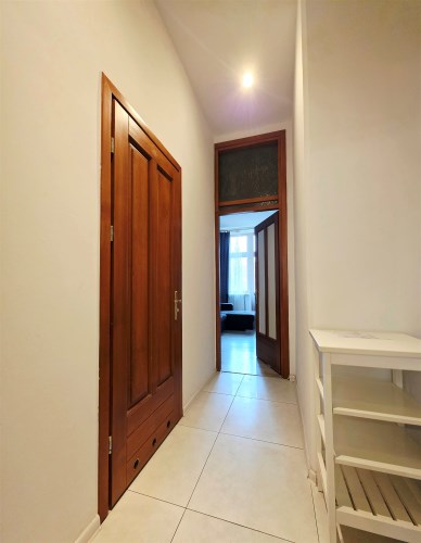 Nieruchomość oddawana jest w stanie do wprowadzenia. Na ścianach tynki odmalowane na biały kolor. Podłogi mieszkania w dwóch odcieniach paneli drewnianych ułożonych podłużnie co optycznie wydłuża nam pokoje. Podłogi aneksu kuchennego w gresie wielkoformatowym podobnie jak łazienki i przedpokoju. Aneks z meblami oraz ze sprzętami w postaci piekarnika elektrycznego, płyty indukcyjnej zmywarki oraz lodówki z zamrażarką na wyposażeniu. Drzwi do mieszkania pozostałe w stylu kamienicznym z zachowanym klasycznego designu sprzed lat.